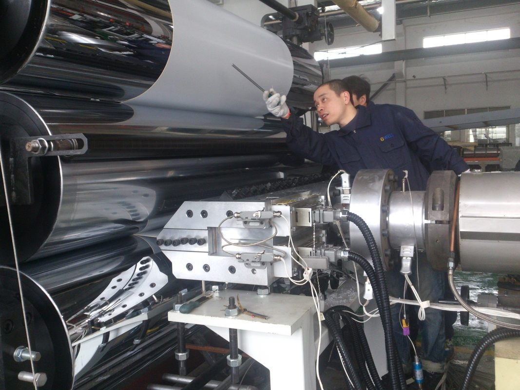 (2) Линия экструзирования: толщина 0,15 - 2,0 мм, ширина ≤ 1300 мм